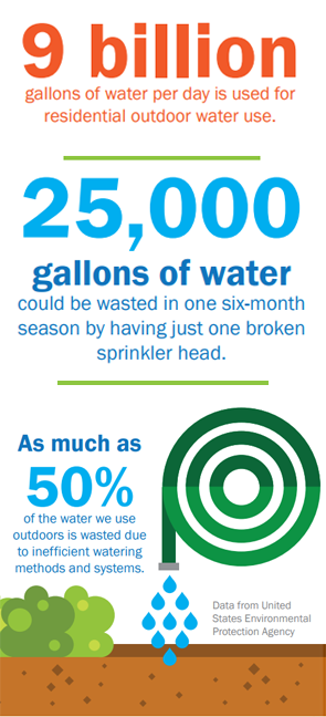 Research shows that landscape irrigation uses 50% or more of the water provided by many utilities. Without proper irrigation system maintenance, much of that water is lost as it never reaches its intended source due to runoff, evaporation, and deep watering below the root zone. Poorly maintained irrigation systems are also responsible for broken equipment, costly leaks, unsightly damage to landscapes, and higher utility bills.